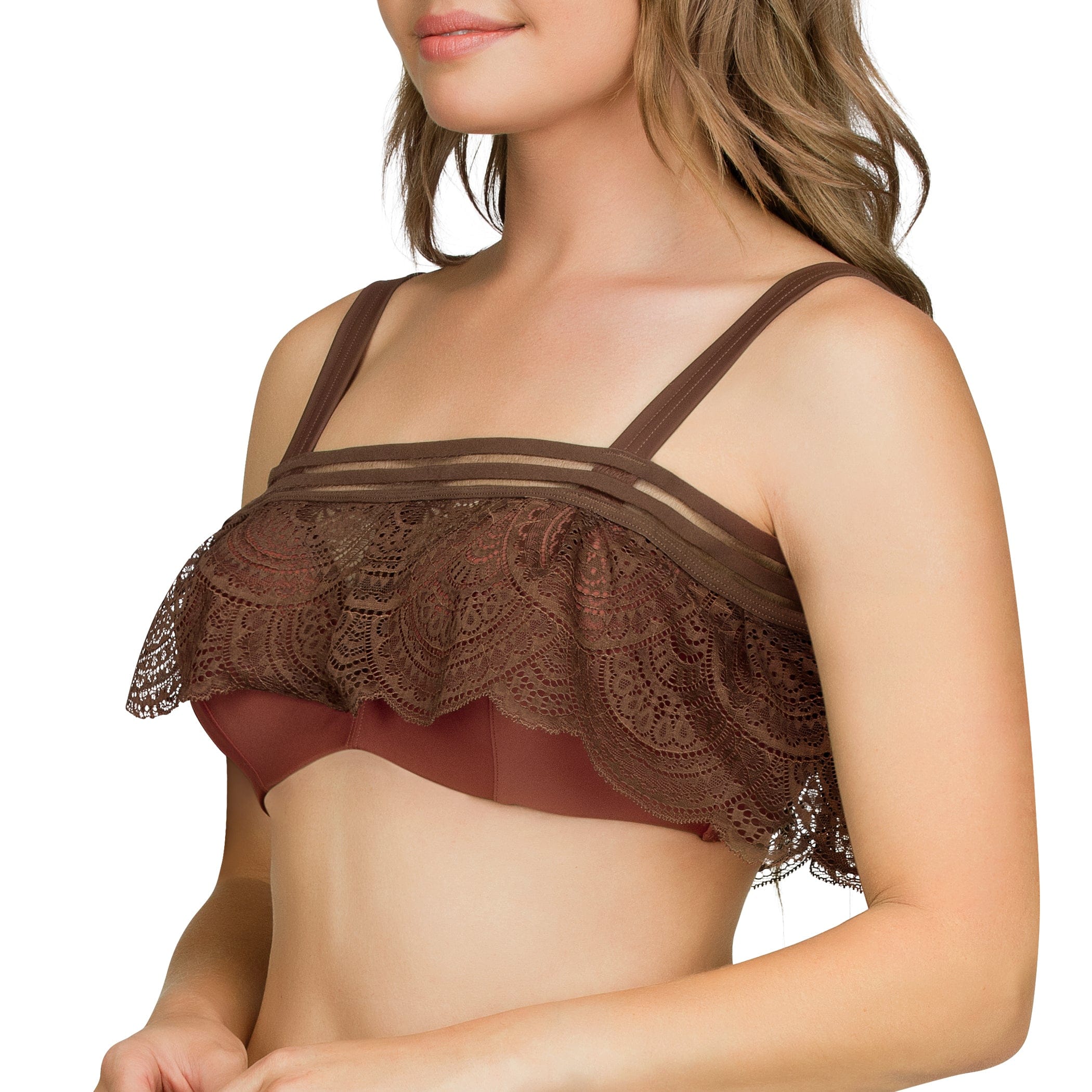 MOD by PARFAIT Pure S8121 Womens Bandeau Bikini Top Ruffle Underwire Swimwear - Terracotta